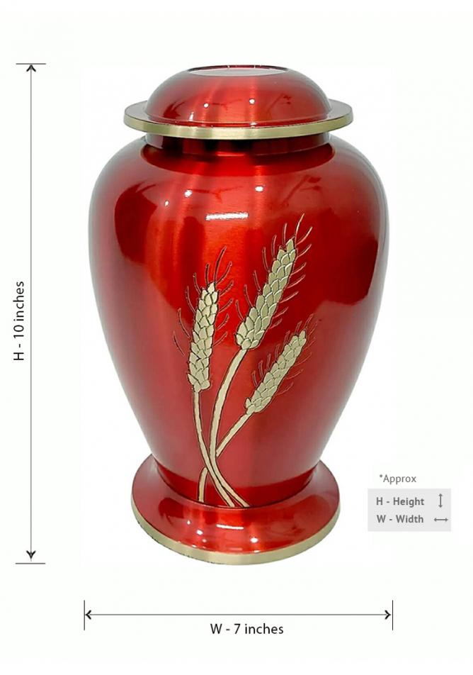 Your Dove Wheat Large Cremation Adult Red Urn will arrive securely packaged for protection and elegant presentation. This urn is ideal for display at a memorial service, home, or final resting place.