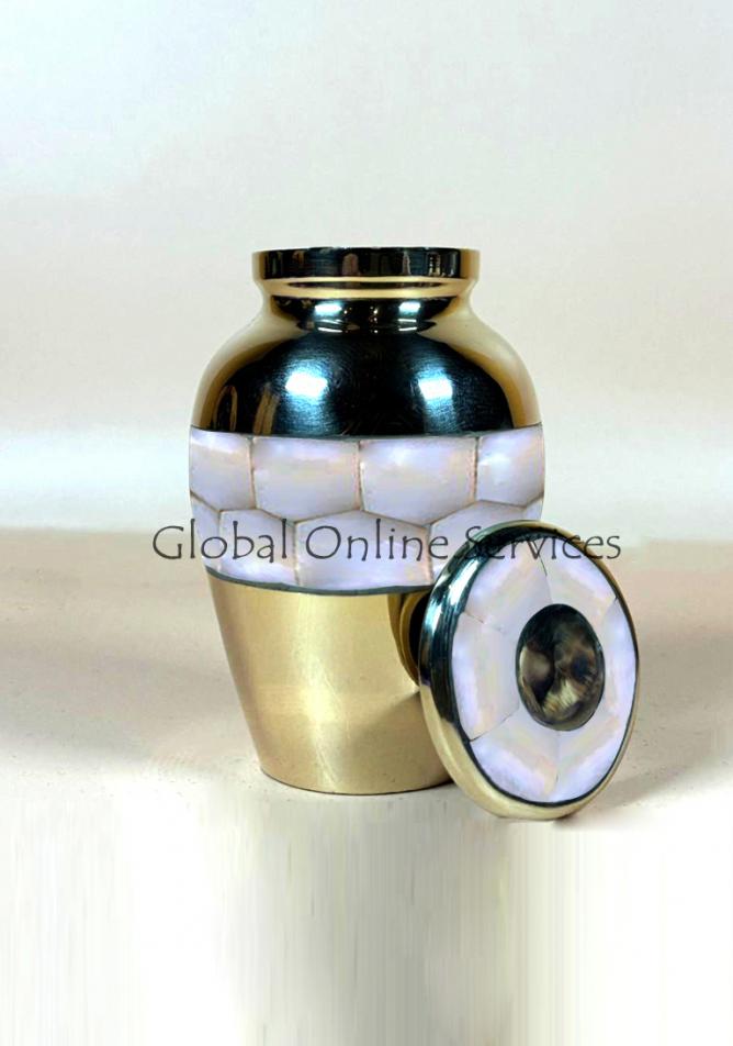 "Really nice mother of pearl keepsake urn. Feels heavy and looks beautiful."