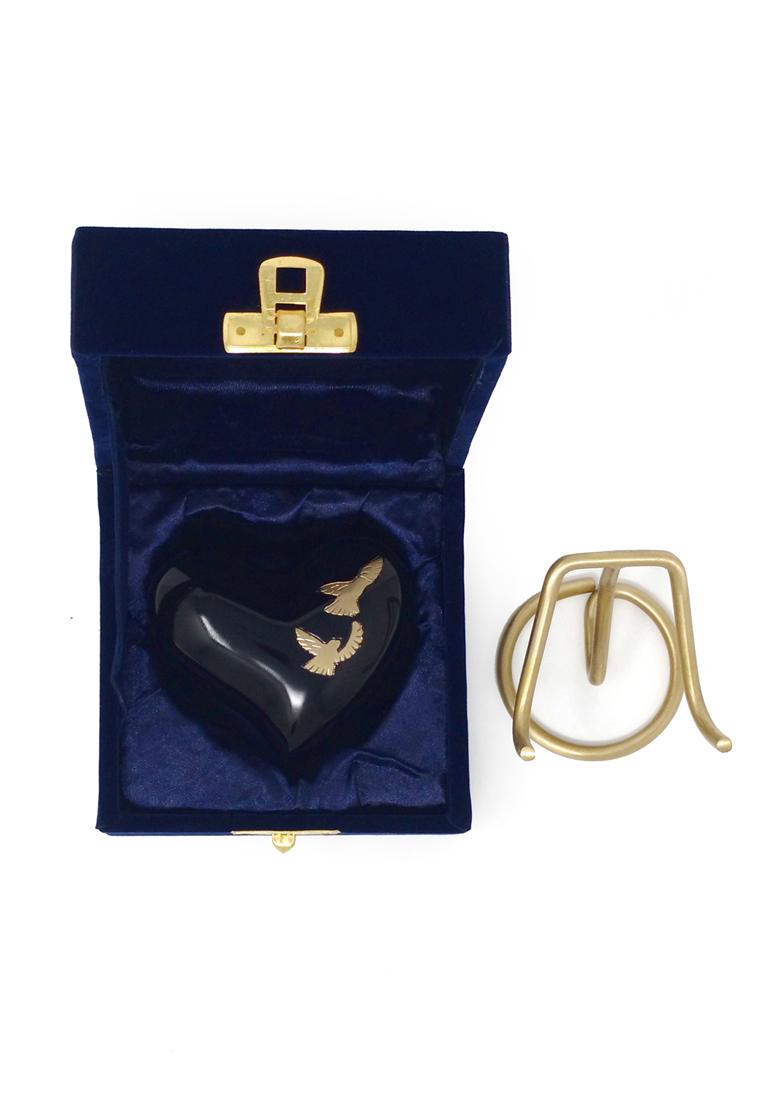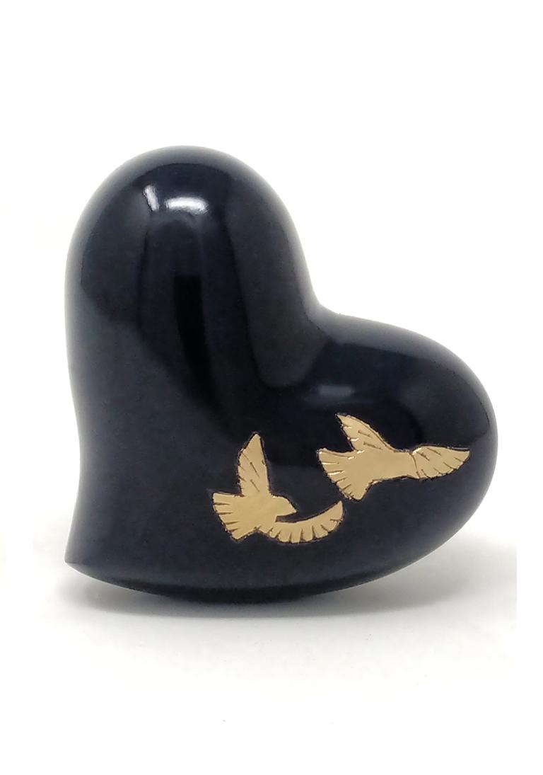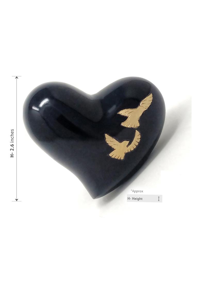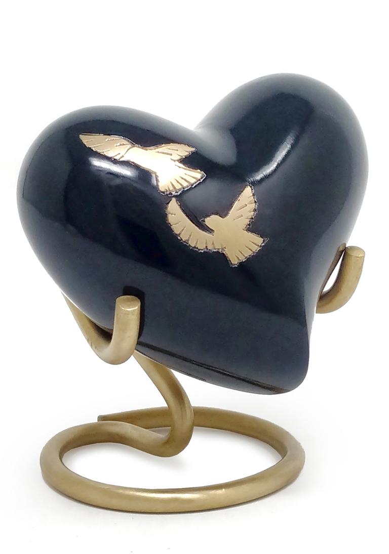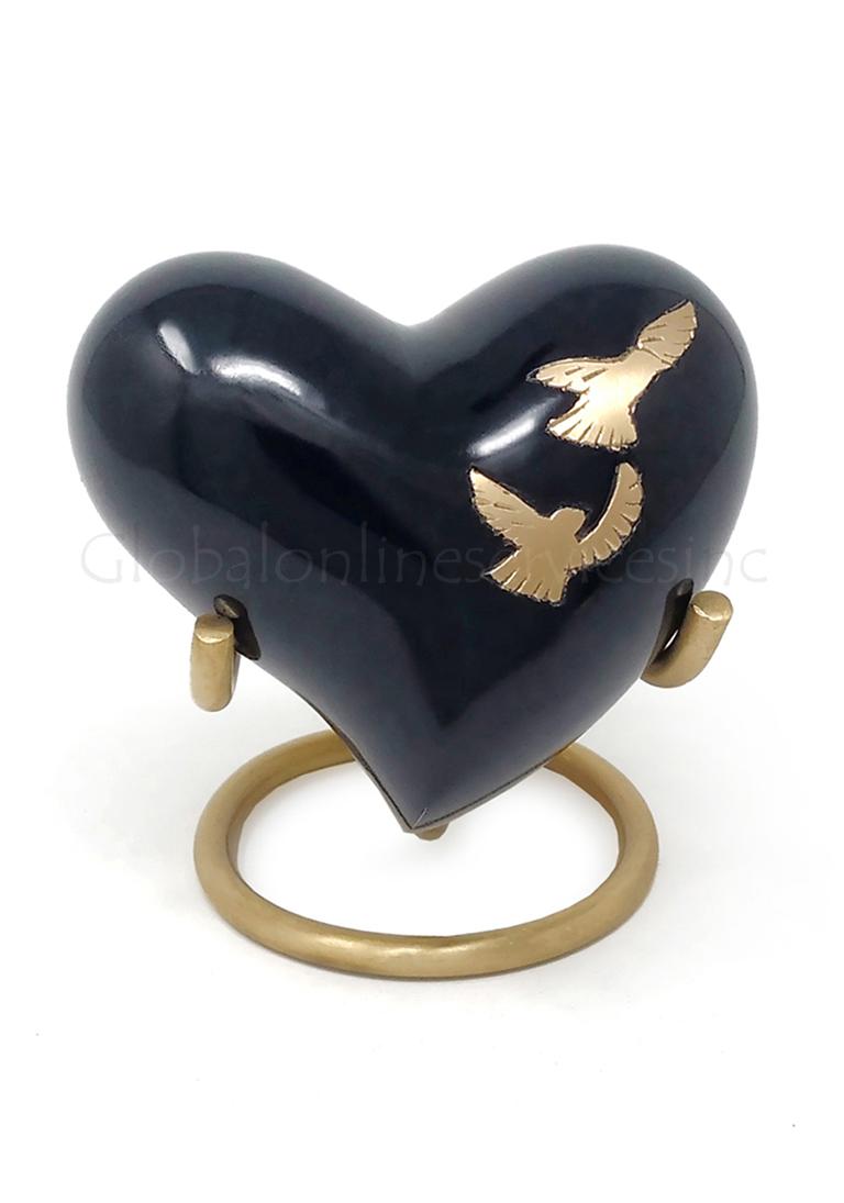 Flying doves black urn for ashes is a small heart shaped keepsake urn designed by highly skilled professionals, which is made from solid brass.