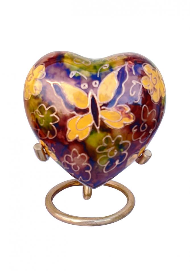 Your Golden Butterfly Small Heart Keepsake Funeral Urn arrives in a luxurious velvet storage box with a matching display stand, offering protection and an elegant presentation. Ideal as a sympathy or condolence gift, providing comfort and a meaningful tribute.