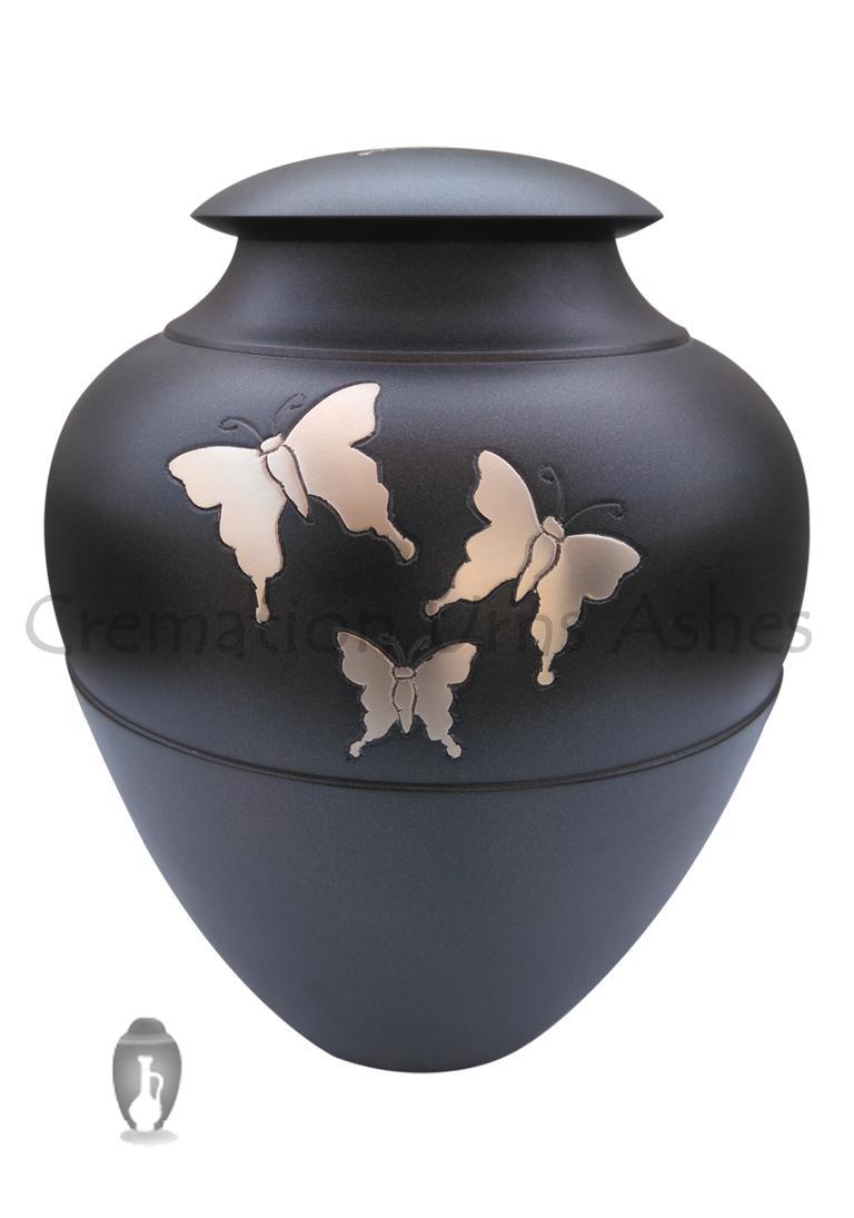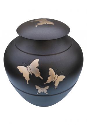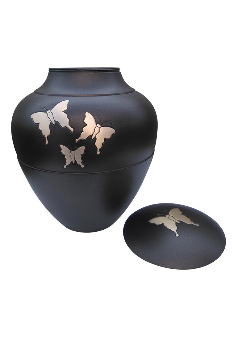 Golden Flying Butterflies Brown Cremation Large Memorial Urn