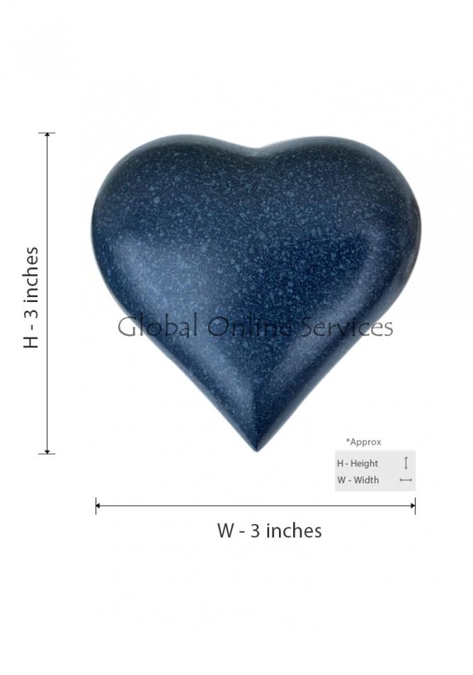 Heart Keepsake Urn measures a volume space of 3 cubic inch to preserve cremated ashes, stands 3 inch tall, inches wide and weighs 0.20kg.