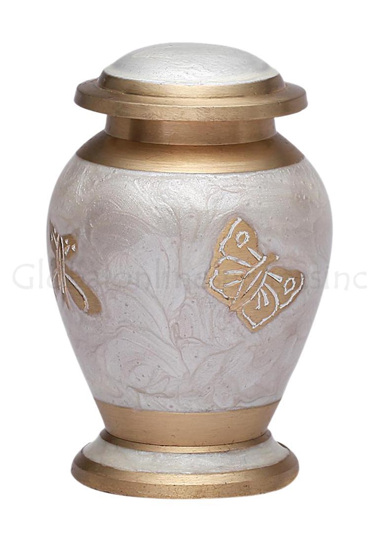 "Nice presentation. This was perfect mini memorial urn. Looked beautiful butterflies pearl white."