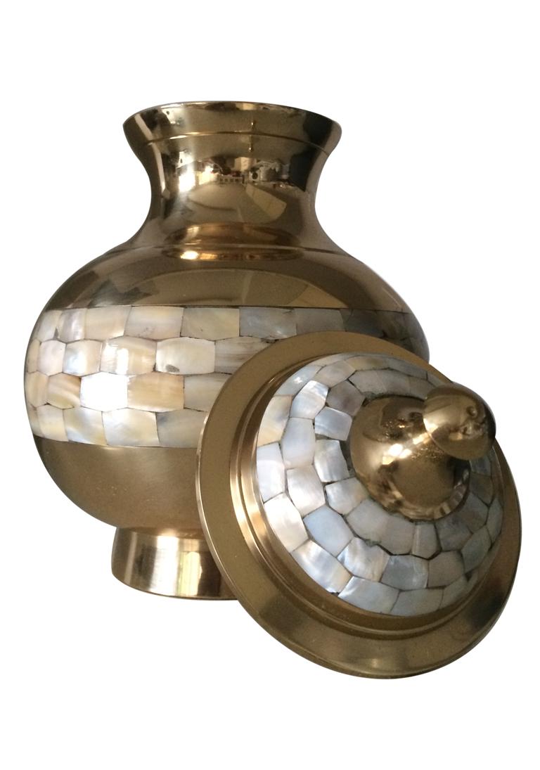 "This urn has a lovely silver trim, I am happy with the durability of this product"