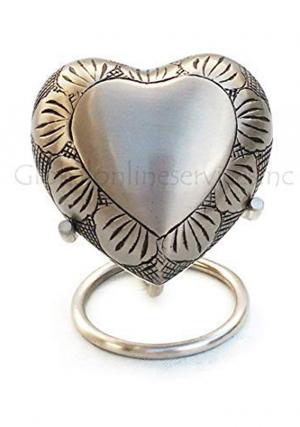 Product Details of Pack Of Four Small Pewter Leaf Band Heart Keepsake Funeral Urn with Stand For Human Ashes