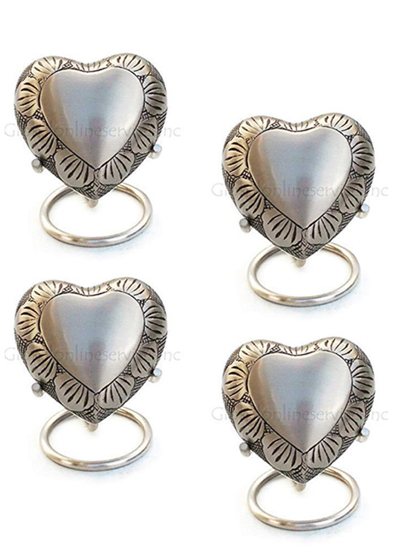 Pack Of Four Small Pewter Leaf Band Heart Keepsake Funeral Urn with Stand For Human Ashes