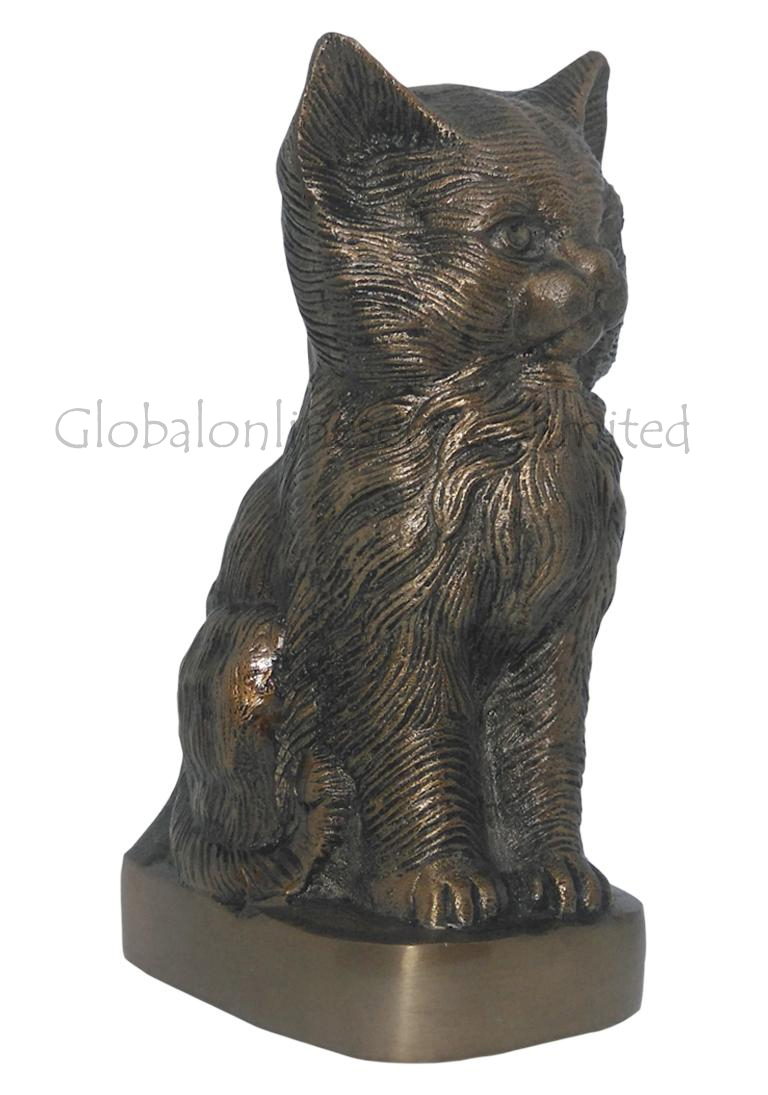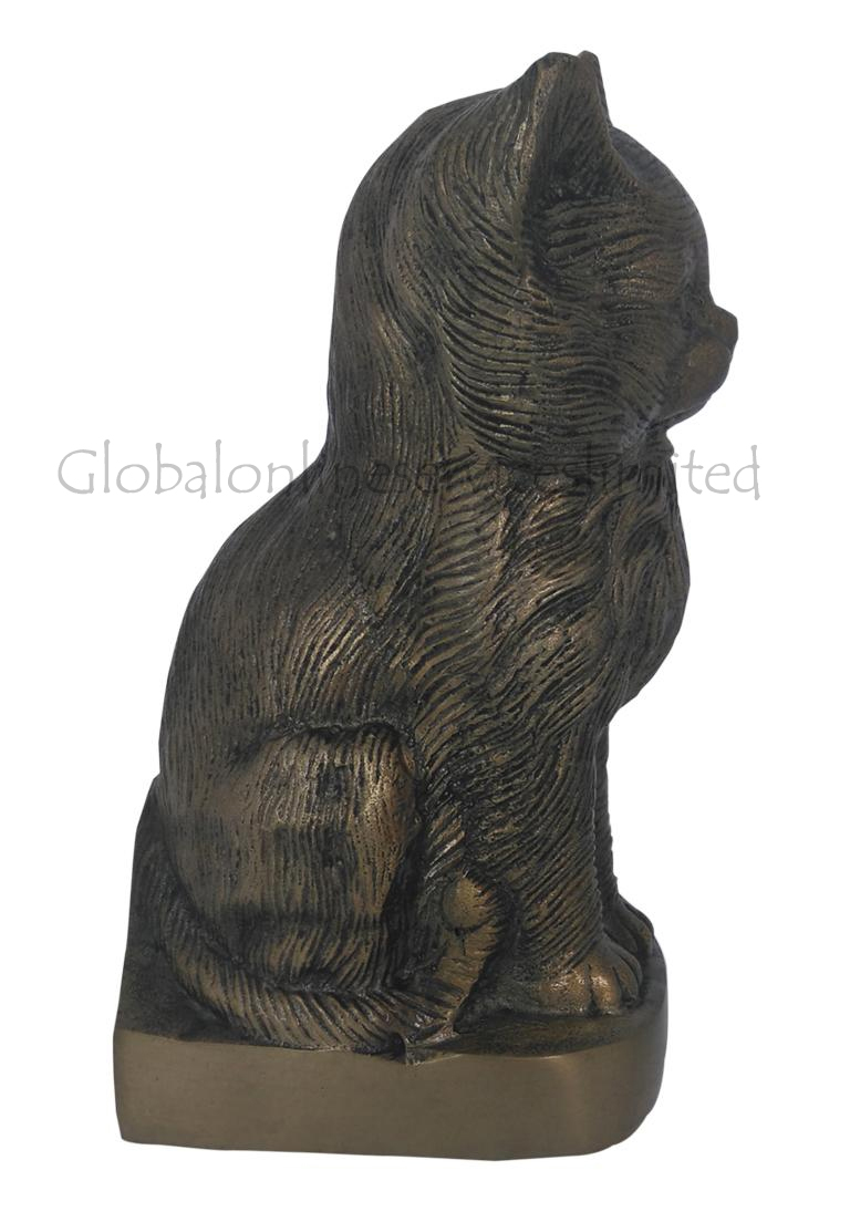 Precious Kitty Aluminium Pet Bronze Cremation Urn is a brand new bronze adorable pet sculpture urn. The cat pet urn is made of aluminium, engraved beautifully as watchable cat with felt lined base and top layer is coated in bronze finish.