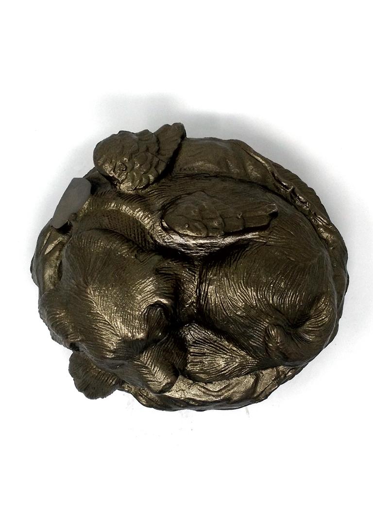 Bronze pet cremation urn for ashes opens at bottom of base and acts as a secure seal, makes perfect satisfaction to the family who deserves to preserve the cuddling cat in the urn.