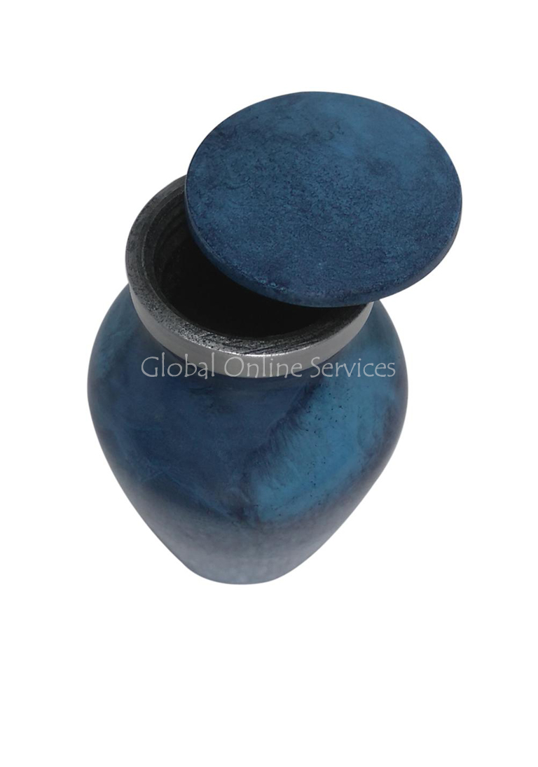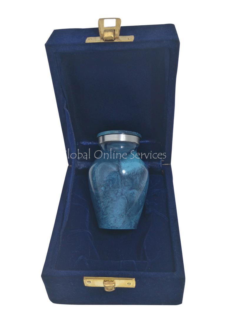 Your Water Blue Small Keepsake Aluminium Cremation Urn arrives in a luxurious velvet storage box, providing protection and a refined way to present or store this memorial piece. The thoughtful packaging also makes it an ideal gift for family members or friends seeking a meaningful keepsake.